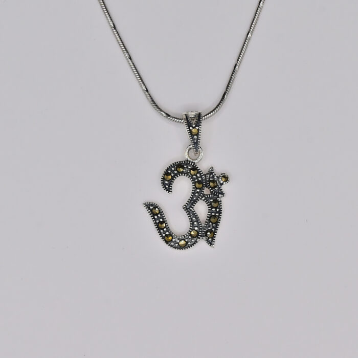 - This Om Pendant is embedded with Marcasite stones which is used for powerful meditation.